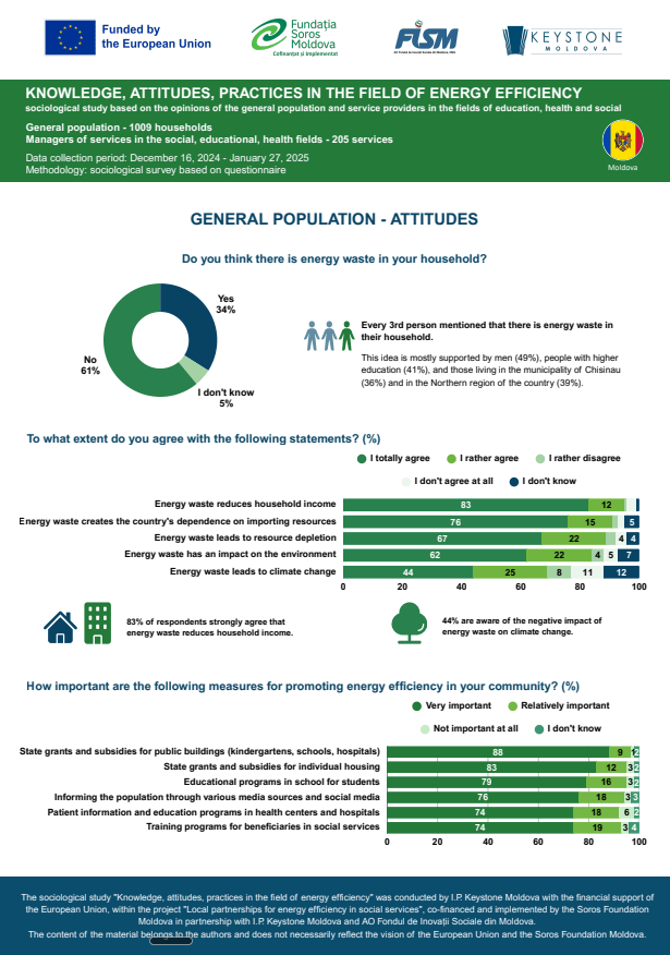 A smaller share of the general population is concerned about the impact of waste and irresponsible attitudes on the environment and climate change. Only a relatively small percentage of respondents perceive energy efficiency as a collective responsibility requiring behavioral changes and long-term investment in solutions.