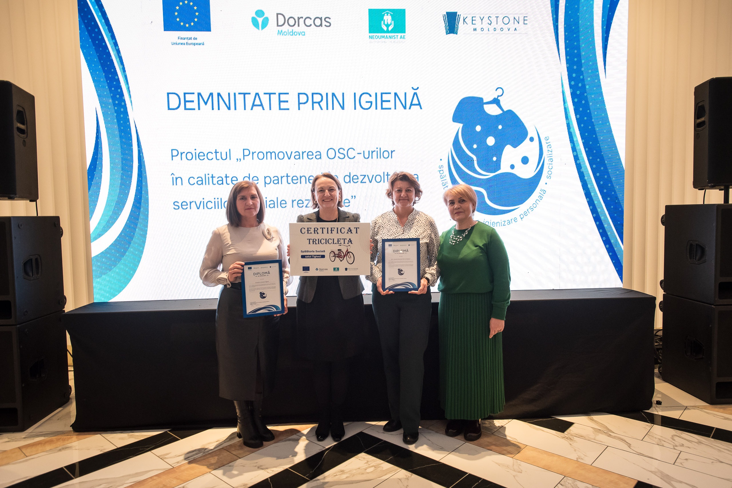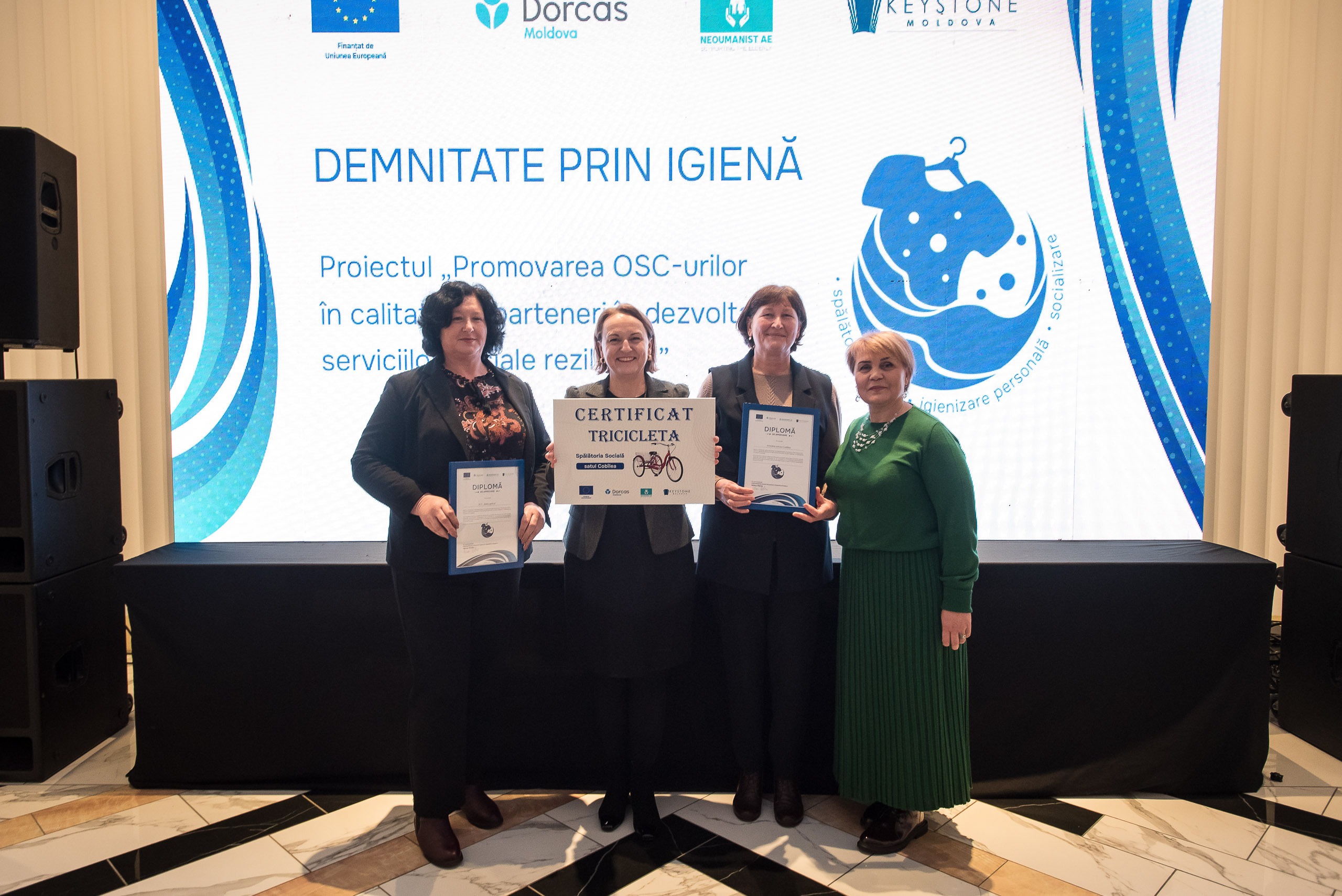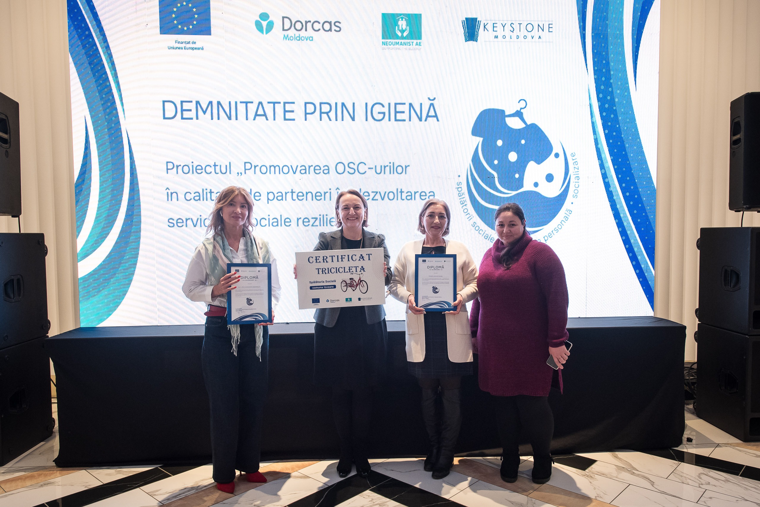 La Chișinău a avut loc evenimentul de totalizare al proiectului „Promovarea OSC-urilor în calitate de parteneri în dezvoltarea serviciilor sociale reziliente”, finanțat de Uniunea Europeană și implementat de consorțiul format din Keystone Moldova, Fundația Dorcas-Moldova și Asociația pentru Educație „Neoumanist”. Cu un buget de aproximativ 1 milion de euro, proiectul a sprijinit organizațiile societății civile și autoritățile publice locale în crearea și dezvoltarea a 16 spălătorii sociale, de care beneficiază gratuit peste 1500 de persoane vulnerabile din 16 comunități din Republica Moldova.