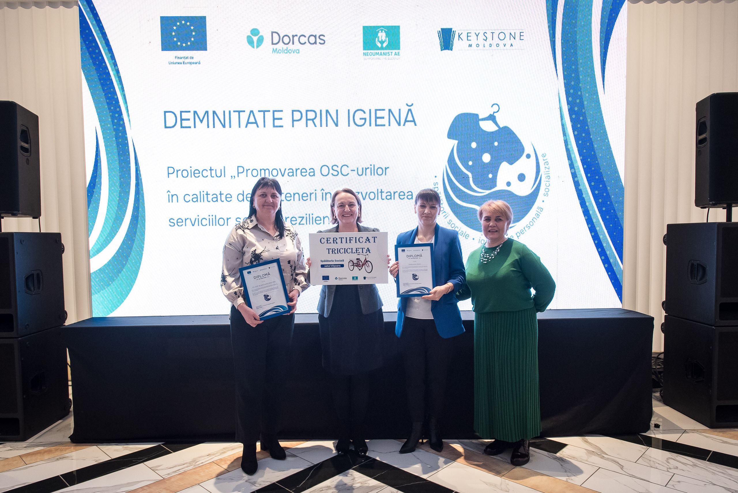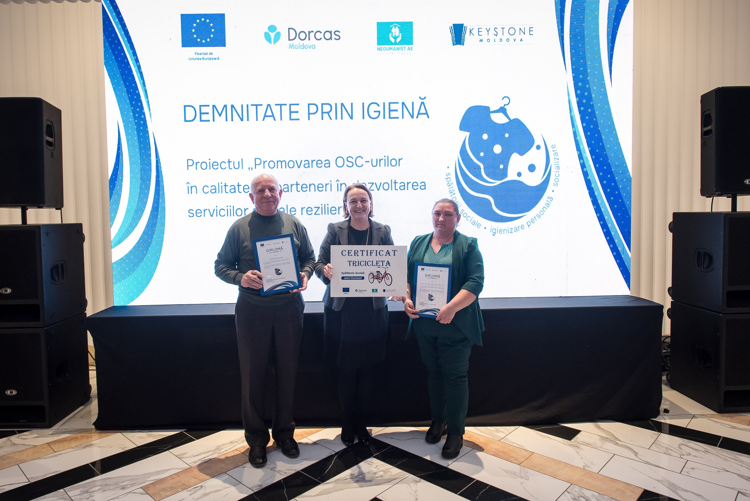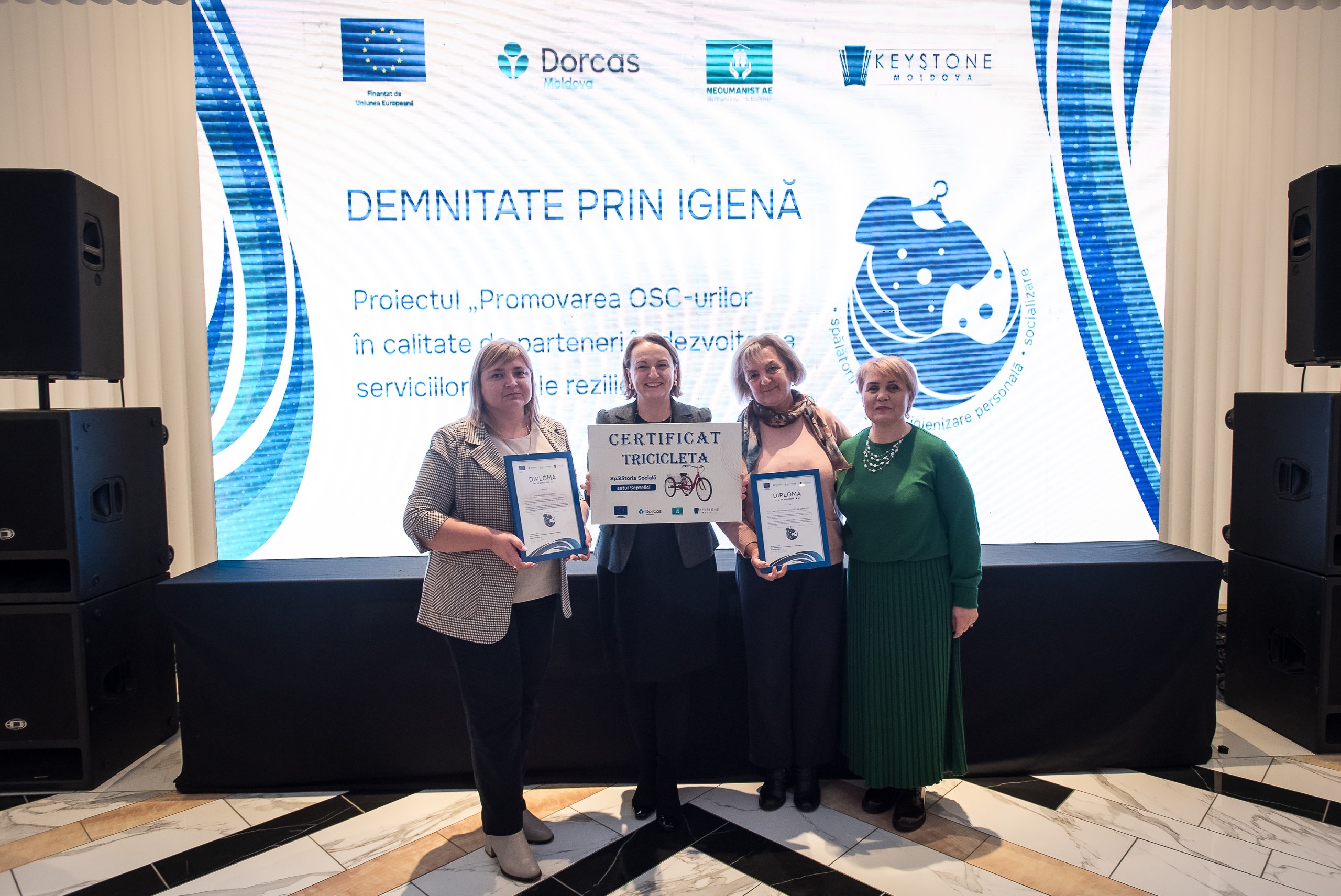La Chișinău a avut loc evenimentul de totalizare al proiectului „Promovarea OSC-urilor în calitate de parteneri în dezvoltarea serviciilor sociale reziliente”, finanțat de Uniunea Europeană și implementat de consorțiul format din Keystone Moldova, Fundația Dorcas-Moldova și Asociația pentru Educație „Neoumanist”. Cu un buget de aproximativ 1 milion de euro, proiectul a sprijinit organizațiile societății civile și autoritățile publice locale în crearea și dezvoltarea a 16 spălătorii sociale, de care beneficiază gratuit peste 1500 de persoane vulnerabile din 16 comunități din Republica Moldova.
